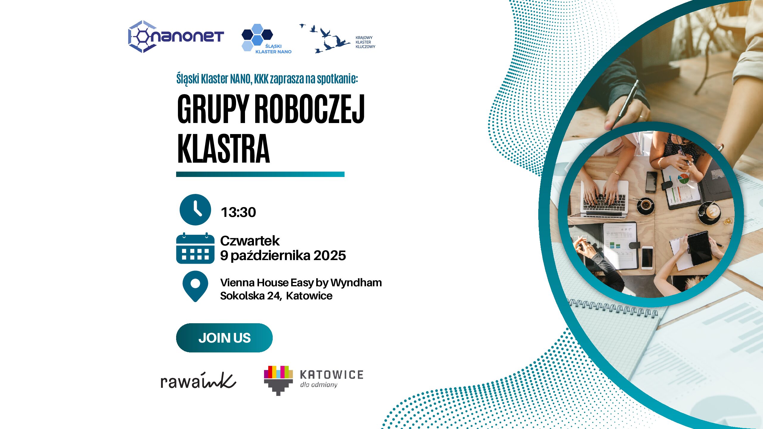 Spotkanie grupy roboczej Śląskiego Klastra NANO zgromadzi dziekanów, przedstawicieli przemysłu oraz kluczowe osoby zaangażowane w rozwój nanotechnologii i zaawansowanych materiałów. To doskonała okazja, by wymienić się doświadczeniami, zaproponować współpracę badawczo-przemysłową oraz zainicjować nowe projekty.